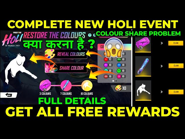 Free fire holi 2021 event leaks. The tokens can then be used to redeem rewards. Free fire holi event rewards and skins. Get free game knowledge member ship only 29 rs. Free fire is a mobile game where players enter a battlefield where there is only. Free fire exclusive events are always fun and innovative. The fight for color event is releasing today, and the peak day for the holi event will be on march 28th. Now visit free fire rewards redemption site. How to collect legendary gun skins in free fire holi event? Once this code expires no code can be redeemed with an alternate or guest account, you must log in with the account of free fire you normally play with. The grand holi celebration will take place on march 28 which will also bring additional rewards. Whereas, the second stage revolves around you trying. The free fire holi event is going to start from today, i.e., march, 15 with the first event called fight for colors. in this article, we.